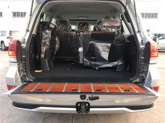 陆地巡洋舰是8座的,但是进入到国内都是七座手续,也就是说行驶证上是七座车,这样更方便于节假日高速免费。每一排的空间都没有问题,后排座椅也可以按比例放倒,尾箱容积还是非常大的。这台顶配车型尾箱垫都用到了实木。后座配置也很高,座椅全真皮,可以调节、后排带有独立空调、独立的娱乐系统(带有两块10.1英寸的平板)。