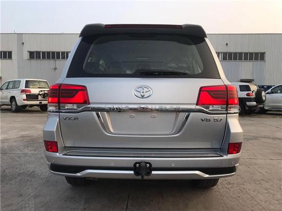 尾部依旧敦实,力量感十足,棱角偏硬朗,后面裸露的拖车钩更是让后车不敢随便靠近。尾灯比较方正,中间有一道镀铬亮条连接,尾灯下方分别是VX-R及V8 5.7的标识,这也显示了身份。后杠有明显的外凸,尾箱踏板上做了防滑设计,没有配置外挂式备胎,现在进入国内的进口陆巡都不能装备胎架了。