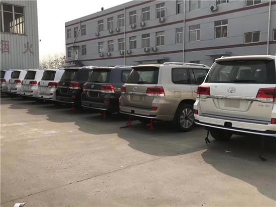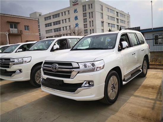 19款中东版酷路泽5700VXR底升版顶配 配置:GT前后包围 ,雷测,底升 12气囊,遥启,天窗 LED氙灯 冰箱 20 轮 环影系统 真皮电动座椅,前排座椅通风,8速,电动后备箱门 油箱138L,9寸屏幕导航,10.1寸后座娱乐系统,全地形全时四驱,四区自动空调,桃木内饰,真皮 桃木 方向盘,多功能方向盘,一键启动,无线门锁,智能卡,中控锁,自动感应雨刷,大灯清洗装置,电动折叠后视镜,防炫目内后视镜,侧脚踏,前、后雾灯,地板照明系统,车辆稳定性控制系统(VSC), 空气动态底盘(KDSS),盲点监测(BSD),倒车后视辅助(RCTA),预碰撞安全系统(PCS),车道偏离警报(LDA),转弯辅助功能,泊车辅助,上坡辅助(HAC), 胎压监测,巡航定速,后尾翼,行李架,拖钩。