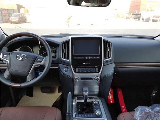19款中东版酷路泽5700VXR顶配内饰与18款相比变化不大,车内上深下浅的新色系搭配 ,让整个车内温馨的不少,丰田酷路泽5700在中控台 的面板换成与内饰新色系更搭的黑色钢琴烤漆材质,真皮座椅与桃木内饰的搭配使整个车内更显高贵。丰田5700在强调越野能力的同时,也在内饰豪华程度和科技配置上下足了功夫。