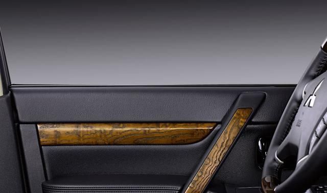 全新的仿山猫斑纹木质条纹,质感看上去非常棒,大幅提高了帕杰罗内饰的档次。