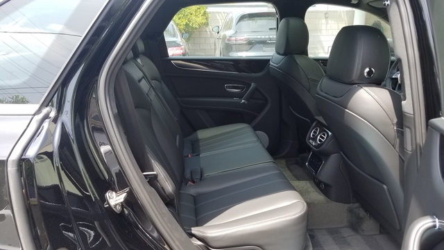 19款宾利添越SUV后排宽大的座椅舒适性表现如前排一样优越,座椅质地也很柔软,包裹性和支撑性都很强,刺绣标示清晰夺目。四座版添越后排座椅功能更加丰富,但是相比五座版,唯一让人觉得遗憾的是靠背不可以折叠,因此备箱空间并不是很灵活。后排娱乐系统分辨率极高,画质非常清晰。