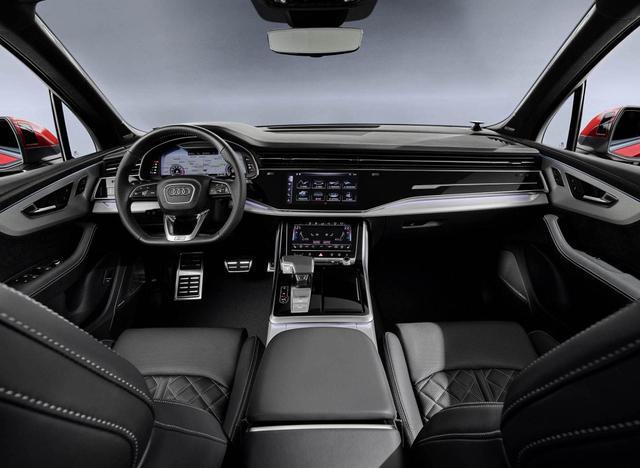 打开车门,新款奥迪Q7的内饰变化还是比较大的,尤其在科技配置方面,新款奥迪Q7取消了现款车型中控的物理按键,全部换成了带有液晶屏幕的触控按键,几乎做到了和奥迪A8同款,整个中控共有三款尺寸较大的液晶屏幕,数量比以科技感著称的特斯拉model x还多。特别在配置方面,新款奥迪Q7还加入了四区自动空调、电吸门、Bang&Olufsen 3D高级音响系统和按摩座椅。