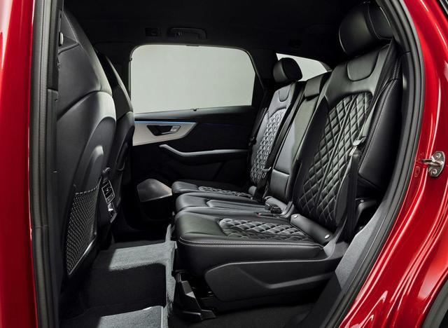 尾部方面,新款奥迪Q7也采用了新的设计,层次感更强了,虽然没有采用贯穿式的尾灯设计,但尾灯下方的镀铬装饰条让整个尾部造型干练了不少,至少比现款车型看着有质感,至于尾灯,新款Q7的LED灯组变成了竖条布局,运动感更强了。