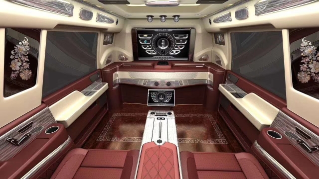 林肯领袖一号商务车整体驾驶舱非常简洁、大气,中控台有一个超大的立式显示屏,并且第一排和第二排头枕后方共有四个超大的显示屏。采用桃木搭配设计,高贵典雅,车门拉手按键力度适中,在细节各处都体现了一个豪华车的品质。林肯领袖一号宽敞的乘坐空间足以让您尽享总统般的待遇。