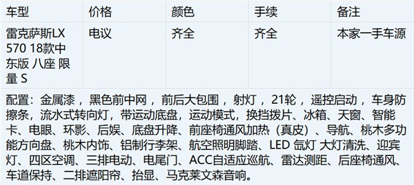 18款雷克萨斯570限量版传承家族特征前脸设计,格栅边框为楔形造型,扑面而来的昂扬气势尽显雄浑本色。三组透镜式LED前大灯,与L型日间行车灯交相辉映,拓展视野,探照未知领域。L型尾灯设计,与前灯组首尾呼应,投射不怒自威的鹰扬本色。车顶线条、腰线及D柱一气呵成,以一往无前的气势令刚毅与雅致在对峙中升华。大尺寸铝合金轮毂,十足张力展现王者风范。开启时转向灯如流水般次第点亮,匠心独运,让众人的视线焦点始终追随。(备注巅峰超级限量版比巅峰限量版发动机多马力,车类氛围装饰更现代科技,外观侧方位多原装SUPER SPORT标志)。