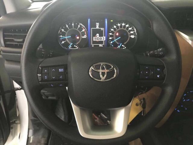 配置:底挂备胎,三气囊,265/65R17,铁轮,6速自动,7布座椅,多功能方向盘,镀铬门把手,卤素大灯+后雾灯,电动可折叠后视镜,手动空调,后排空调出风口,带USB单碟CD/收音机,6喇叭,鲨鱼鳍天线,SR5徽章,胎压监测,地毯,黑色脚踏,LED高位刹车灯。(了解更多资讯文章底部李女士24小时服务热线)