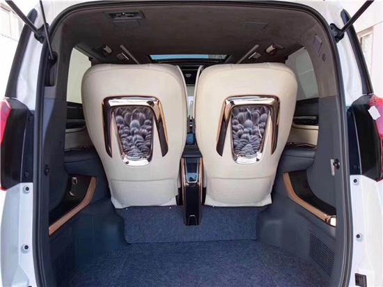 内饰商务配置:● 电动吸合双侧滑门带防夹功能● 乘客舱电动雾化玻璃带手动遮阳帘● 电动一键式升降雾化隔断● 飞机头等舱首长座椅,180度展开带3级记忆功能(通风,加热,气动按摩)● 紫檀木功能小吧台● 伸缩航空铝制小桌板2级折叠● 现代奢华感酒柜● 紫檀木+环保皮侧包围面板● 进口级游艇豪华电子钟表● 炫彩渐变氛围灯+多功能前后双天窗● 后舱三档亮度调节照明灯● 全车紫檀木铝制带激光雕刻花纹地板● 采用美国大能隔音底盘● 后舱座椅带触摸式蛇形360度旋转阅读灯● 超大储物后备箱● 多功能储物格● 后备箱多级挂物勾● 多工能折叠后视镜● 进口全车空气动力学套件