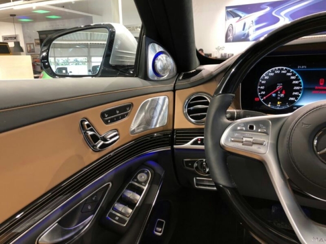 外观方面:与新一代梅赛德斯-奔驰S级轿车相比,迈巴赫S级轿车的侧面轮廓更是其独有之处。与新一代S级轿车相比,迈巴赫S级轿车的后车门缩短了66毫米,并被精心地融入到外观设计中。后门没有三角窗,而是被整合到C柱中。因此,后排座椅则整体位于车门之后,因此实现了特殊的私密感及专属感。三角窗及其它车窗区域,甚至是B柱整体均带有镀铬饰条。优雅的“Maybach Manufaktur”标识则不无骄傲地出现在C柱两侧。