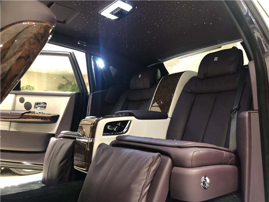 19款劳斯莱斯幻影后排才是重中之重,电动折叠板和后排影院系统被巧妙的隐藏在前排座椅的椅背后,只需轻触按钮,便可以自如收放桌板和影院系统,带来完美的剧院体验。后排中央固定扶手做了重点优化,其中国可容纳带有威士忌酒具的酒柜、香槟酒具和冷藏箱,方便乘客畅快交谈,后排座椅角度可以任意调节,这一设计让客户无需转头便可视线自如交流。整个车厢内饰全部以最精美的高档材料装饰,使车内极具触感。