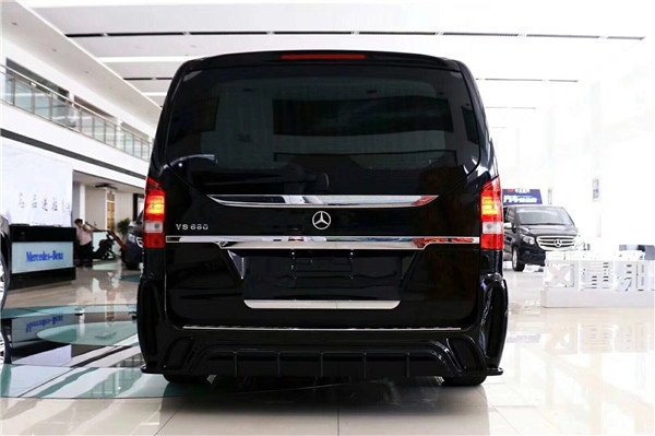 2018款奔驰迈巴赫VS680尾部也是跟常规V级略有改变,增加的镀铬装饰条,全新样式的后保险杠,依旧是隐藏式的排气,只能通过尾部的VS680才知道此车的不凡。