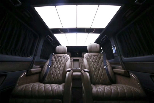 2018款奔驰迈巴赫VS680顶部分采用成本相当高的Alcantara包覆,并且保留了可开启的天窗和后部的迈巴赫九宫格顶灯,如果说这种豪华的氛围只是感性上的认知,那用理性的决定选择迈巴赫V级就体现在它的个性化功能上。