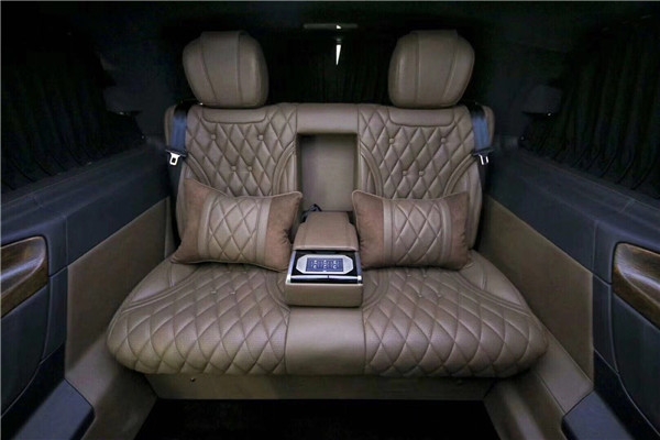2018款奔商务版驰迈巴赫VS680后排座椅柔软舒适、支撑足,坐姿可调幅度非常大,能够让乘客半躺姿势乘坐在后排,腿托加分,对比同级别车型,这个后排必须满分。科技感十足,并且加入前、后排手机无线充电功能及头等舱级后排独立座椅。后排座椅支持180度电动放平,出行老人孩子可以在上面小憩一会!