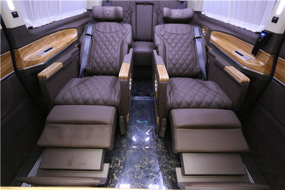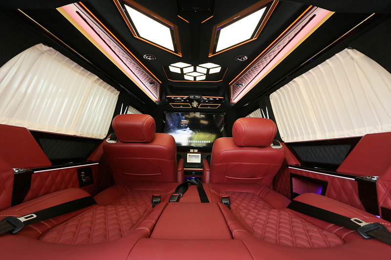 进口奔驰V级改装的版本多以6座车型为主,图中这款的内饰主打以红龙雨林莽皮珍稀元素展开,顺便晒两张之前车展现场的模特图供大家养眼。