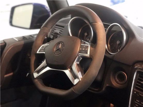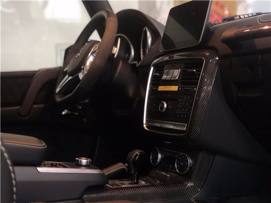 从内饰来看,新一代G级使用了奔驰品最新的家族式设计元素,包括仪表盘、中控显示屏、空调控制区、COMAND操作区和带有双拇指控制(Dual Thumb Controls)的三辐式方向盘等。中控台上的“3把锁”、副驾驶前方的扶手等G级经典的设计元素在新车上均得到保留。中控台功能按键盘设计比较紧密,但是做工精细。中控台配置COMAND信息娱乐系统和一个8英寸大尺寸液晶显示屏。