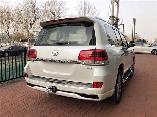 通过这张实拍图片可以看到外观加装了大包围,更换了高配的镀铬中网,添加了航空脚踏板,雾灯,LED大灯,流水转向灯和行李架。一点也看不出他是酷路泽中的乞丐,反而更像一位王者。