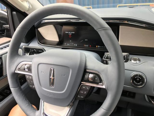 领航员新款三幅式多功能方向盘带加热功能,真皮包裹方向盘兼具温润触感与典雅质感,三幅式设计令操控更加得心应手,在尊崇气息之上平添一分动感魅力。真皮部分可在短时间内加热,即便在寒冷的天气状况下,也能保持对温度的掌控感。内饰豪华气派,做工精细。车内大量皮质和实木材覆盖,让人即刻尊享定制体验。新款林肯领航员采用12英寸全液晶的仪表盘,悬浮式显示屏,科技感十足。