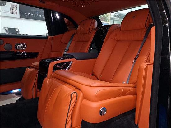 2019款劳斯莱斯幻影后排电动折叠板,和后排影院系统被巧妙的隐藏在前排座椅的椅背后,只需轻触按钮,便可以自如收放桌板和影院系统,带来完美的剧院体验。后排中央固定扶手做了重点优化,其中国可容纳带有威士忌酒具的酒柜、香槟酒具和冷藏箱,方便乘客畅快交谈,后排座椅角度可以任意调节,这一设计让客户无需转头便可视线自如交流。整个车厢内饰全部以最精美的高档材料装饰,使车内极具触感。抬头可见浪漫的星光饰顶,这也是劳斯莱斯的专属。