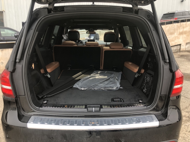 加版奔驰GLS450配置:雷测 通风真皮座椅 豪华包(全景天窗,前后座椅加热,前排座椅按摩,电吸门,后排手动遮阳帘,温控杯架,方向盘加热,COMAND在线导航,智能卡无钥匙进入,苹果CarPlay,停车辅助,并道辅助,360环影,哈曼音响,DVD光驱,触摸手写板)灯光包(LED智能照明系统,室内氛围灯,迎宾灯,自适应远光辅助,随动转向头灯)运动包(AMG21寸轮毂,运动包围,自适应空气悬挂,底盘升降,多路况驾驶模式,脚踏板,拖车钩)驾驶员辅助包(雷达测距,车道偏离预警,主动盲点辅助,交叉路口安全提示)暗夜包:烟熏轮毂 烟熏行李架 烟熏套件。