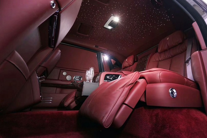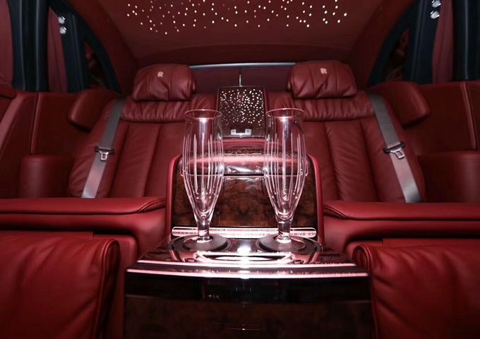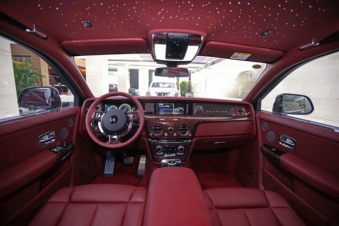 配置:钻石黑/热情红-现车定制包:核桃木装饰,航空座椅,顶级定制地毯,定制雨伞,22吋锻造抛光轮,24K纯金“欢庆女神”立标,前座椅通风按摩,星光顶,二排遮阳帘,二排腿部支撑,双腰线,后座椅通风按摩,主动巡航(ACC雷测),全红内饰座椅,夜视行人识别系统,无钥匙进入,二排遮阳帘,后排冰箱,二排脚蹬,劳斯莱斯定制音响,远光辅助,所有门边logo压花,所有头枕logo刺绣,个性VIN版,双镀铬排气。标准配置:胎压监测,车库互联 ,舒适进入 ,吸烟套,前座椅通风/加热/按摩 ,后排座椅加热/按摩 ,负氧离子空气净化 ,停车辅助 远光辅助 ,驾驶辅助 ,雷达测距,自动启停,360度环影 ,抬头显示,导航,CD/卫星电话/电话/智能驾驶互联,后排影音系统,手机无线充电,夜视系统,WIFI热点。
