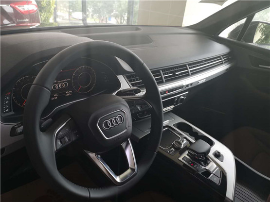 奥迪Q7 18款 3.0T:造型是典型奥迪风格,材质高档、做工精细,真皮座椅和方向盘、深棕色木纹装饰的点缀都体现出了低调的豪华感。还有仪表盘的水滴造型很别致,中控台的功能键排列有序,在排挡杆的周边,布置了MMI多媒体交互系统和一键式启动按钮,体现出奥迪崇尚科技的一面。足够大的车身尺寸,让驾乘和载物都毫无压力。
