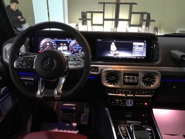 全新G63的内饰极具现代感,中控台出风口、扬声器指示灯的造型与车灯相得益彰。而两块12.3英寸的显示器则让整个内饰氛围升华,还提供了经典、运动、渐进三种模式可选。舒适、科技配置也让人眼花缭乱,包含:驾驶员座椅记忆、前后座加热、多角度调节、座椅按摩(Active Multicontour座椅套装)、AMG多功能方向盘(可控制自适应巡航、语音控制、多媒体控制等)。