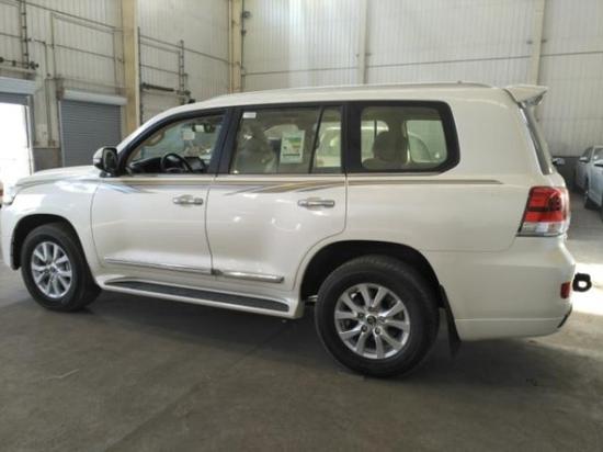 2019款中东版酷路泽5700顶配的外观与其他配置的5700大有不同,外观带有前后大包围,前脸镀铬条中镶嵌流水灯,20寸的抛光轮毂,尾翼高位刹车灯,全车 镀铬装饰,而且外观的前车标是镜面的,这就是ACC雷达测距系统也叫自适应巡航系统,尾部是VXR标识,这是顶配的象征。