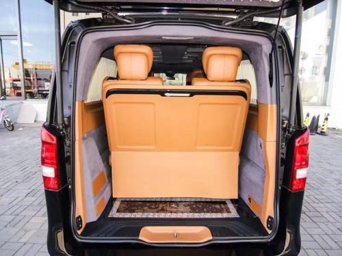 19款进口奔驰V250配置:小窗侧拉窗、全车镀铬套件、V-class大灯和尾灯、日间行车灯、顶部行李架、实木高光装饰件+涡轮出风口、全车内饰镀铬装饰套件、四门奔驰原厂门提、全车内饰真皮包覆、曲面九宫格顶灯、奔驰原厂分体休息脚踏、四门镜面迈巴赫迎宾踏板、咖啡真皮仪表台、手动窗帘、进口翻毛绒顶棚、进口纯羊毛地毯、行政会议桌、12.1英寸后排头枕娱乐屏、前排奔驰原厂扶手加12L温控冰箱、前排电动座椅手改电带通风加热、迈巴赫旋转电动航空座椅奔驰原厂开关、第三排180°电动沙发床奔驰原厂开关、后排折叠小桌板、倒车影像。