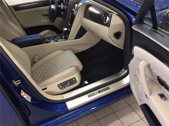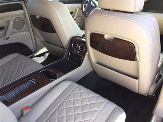 尾部,这款车依旧采用的是方形的尾灯,与前脸格栅的造型相呼应,复古韵味十足,配合上车尾分流器以及与车身同色的保险杠,视觉效果上更显低矮和沉稳。此外,这款车还选装了倒车影像功能,并配备了电尾门,它这个电尾门的开启方式很特别,开关在宾利尾标的这个“B”形标志上,既新颖又不影响美观。