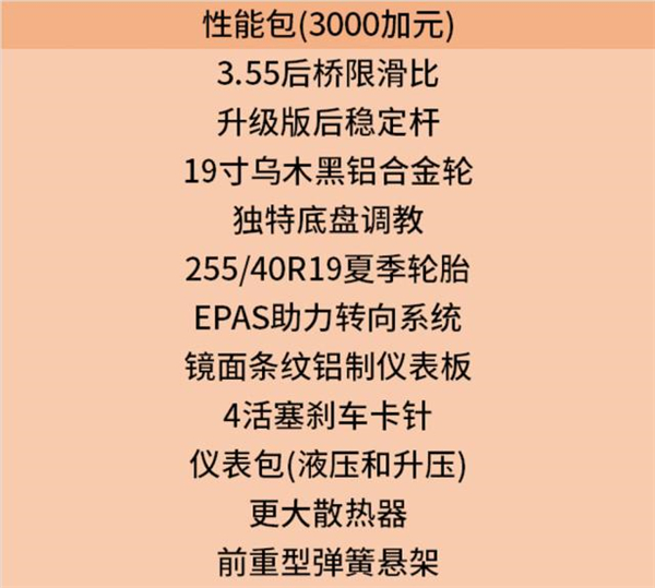 目前平行进口不管是加版、墨版、还是美版均只提供2.3T一种动力规格,而中规版本则有2.3T以及5.0L V8两种动力可供选择。在动力种类上中规版本无疑更胜一筹。