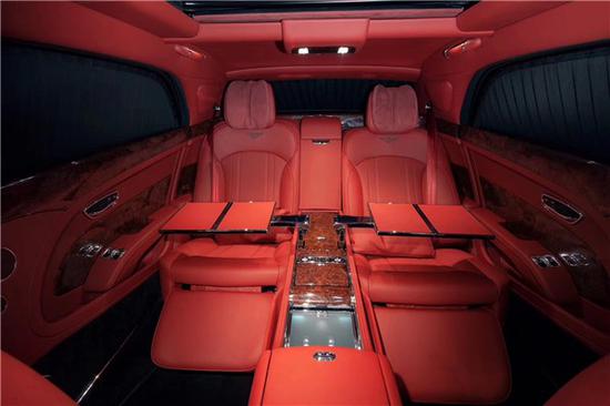 19款宾利慕尚加长黑外红内展厅现车,选配:四座,桃木 内饰,21寸轮毂,航空座椅,宾利小桌板。