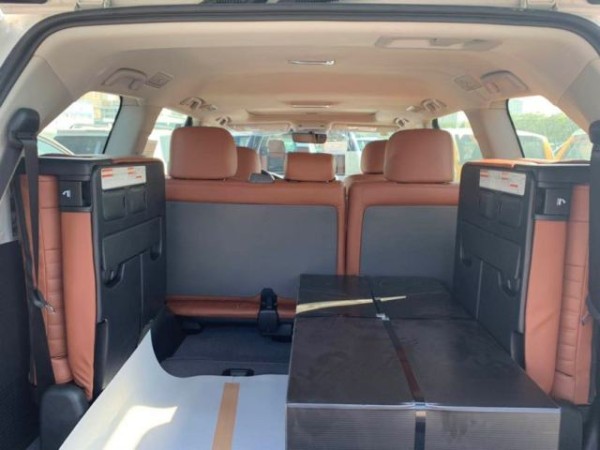 19款柴油酷路泽4500 八气 刺绣真皮 限量 黑/棕配置:限量刺绣真皮,主驾驶电动6速手自动变速箱,8气囊,7座,天窗,冰箱,LED氙气大灯,大灯清洗,前后大包围,航踏板,镀铬外观,桃木内饰,前后电眼,倒车雷达,无线充电,蓝牙电话,桃木方向盘,巡航定速,蠕行模式,差速锁,2档起步模式,一键启动,大屏导航倒影、400米遥控启动,3分区空调,柴油加热系统,拖钩,18铝合金轮毂、底挂全尺寸备胎、