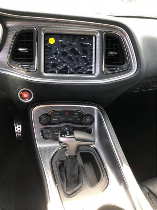 内饰方面:19款挑战者6.2T美版SRTHellcat地狱猫 配备平底方向盘,仪表盘采用复古设计,但大部分是彩色液晶显示,中控面板配备的8.4寸屏幕集成一个优秀的系统,用户可以在上面调校车辆参数,比如变速箱挡位尺比、直线加速弹射起步、G力设置、比赛计时等专业数据。