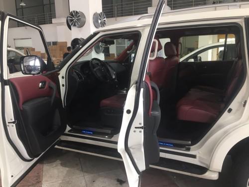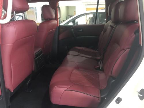 19款尼桑途乐稍加装饰,档次瞬间就不一样了,这款途乐是4.0低配XE版本升级之后的原车图片,升级的银爵包围,20寸轮毂,全车桃木内饰,全车酒红色真皮内饰,中控特斯拉大屏,全车迎宾套件等等,仅需几千元即可完成升级,是不是很漂亮呢!