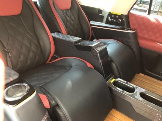 内饰方面,麦克将军单由外观设想它的内饰风格,麦克将军SUV的车内布局一定会被想象成战车那种简约硬朗的驾乘风格,但是当您拉开车门,车内所展露的豪华设施定会为之而惊讶内饰,座椅纯手工缝制,看上去非常舒服,有着一种优雅古典的格调。合理的四座舒适布局,多功能影音系统,真皮全包裹式座椅,让驾乘体验更加愉悦。