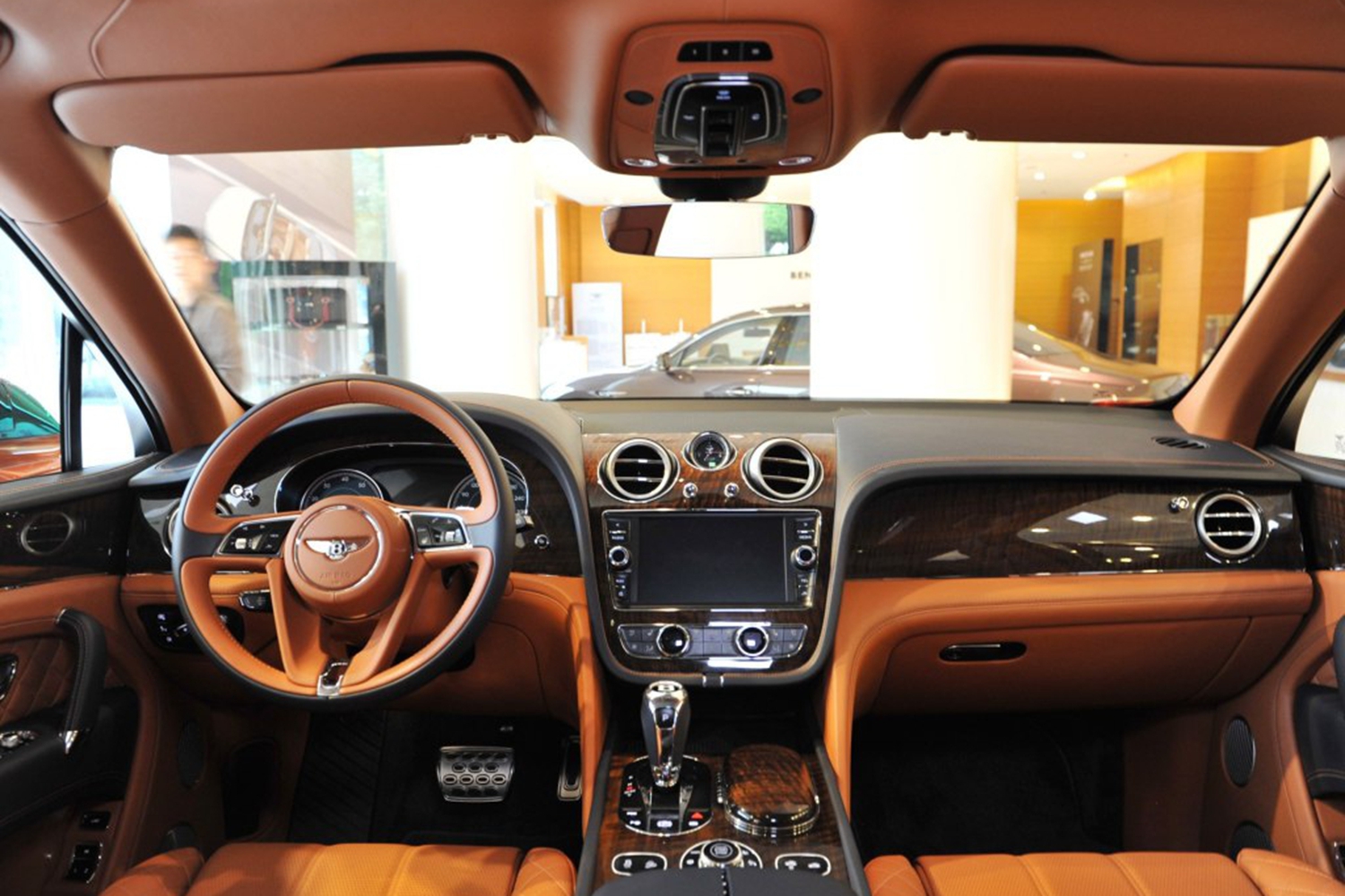 宾利添越长*宽*高5141*1998*1742 mm,轴距2992mm,属于中大型SUV。从品价值和内饰水平来看,宾利添越维持了手工打造,因此无论是顶级材料的成本还是手工打造成本都不会低。新车配备了全新样式的三辐式多功能方向盘,整体质感良好,中控台中央悬浮式液晶屏设计,上方圆形出风口是宾利独有的“牛眼式”出风口设计,宾利添越内饰用料之奢华、做工之精致均无可挑剔,真皮包裹的方向盘手感无与伦比,真正了解添越之后会发现,它更适合驾驶,面对着方向盘的这个位置才是最被重视的。精致典雅的内饰由英国克鲁工厂纯手工完成,用料做工极为考究,座席肩部钻石纹绗缝工艺,剪裁精巧,座席之上刺绣宾利徽章所洋溢的对称风格设计,庄重而别致。最上方的这块石英表做工足够精致,传统钟表在车内出现更多的作用就是提升品位。