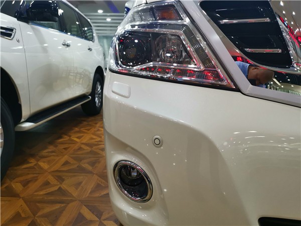 19款尼桑途乐Y62铂金版整体设计可以称之为,大气磅礴,在硬派作风的基础上,充分演示出了自己的独特魅力。前脸两道微微歪斜的竖条设计持续了家属传统,广大的头灯与前脸中网融为一体,显得霸气实足,硬朗的车身线条设计,并将优雅身姿和狂野性能完美融合到一起,尽显大气。
