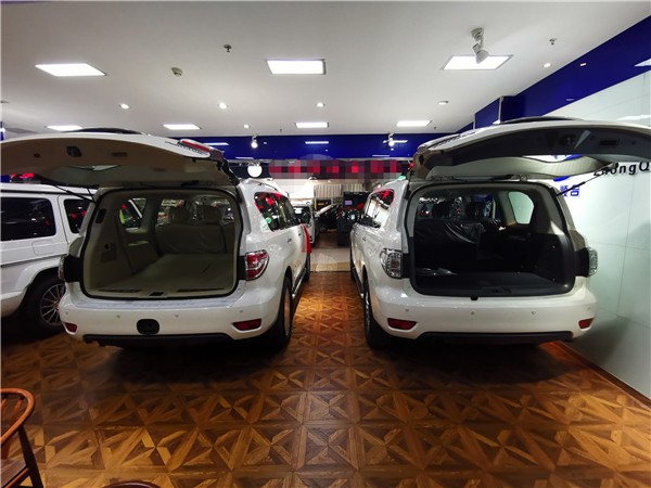 19款尼桑途乐Y62在售的,有4.0与5.6两种排量,一共分为五个型号。最主要的差异在于:氙气大灯(卤素),前后包围,轮圈尺寸,带不带天窗,音响品,真皮座椅(织物),后排娱乐,气囊数量,以及其他小件配置。(了解更多资讯请拨打文章底部咨询电话)
