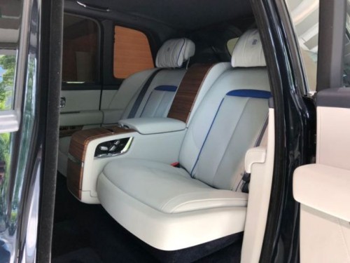 选装配置:羊羔毛脚垫,外部电动关门,22寸轮毂,后排影院系统,劳斯莱斯定制音响,金色腰线,全景天窗,后排野餐桌,座椅滚边,对比缝线,RR头枕刺绣,前排座椅按摩,后排独立座椅!内饰衬板(后排座椅按摩,后备箱延展必须备件),前后座椅通风等等!