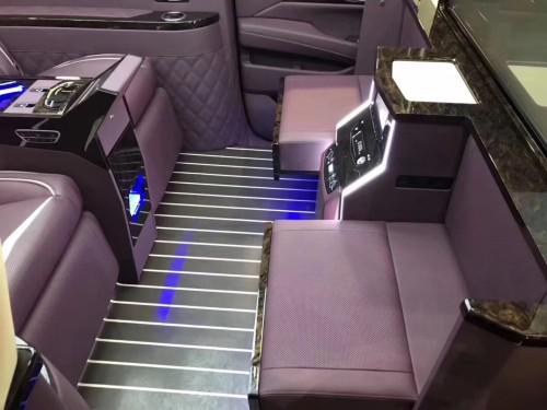 19款凯迪拉克总统一号商务车配置:新款高顶带行李架,电动脚踏板,全车VIP大包围,电动后屋门,全车隐私玻璃,车身迎宾灯及夜间地面照明,远程摇控起动,后舱全景电动大天窗,全车豪华高级进口小牛皮纯手工定制座椅,全车豪华航空仓内部装饰,全车液晶触摸屏电器控制系统,后舱电动航空按摩座椅及腿托,电动升降超清液晶电视可连网络及投屏,BOSE家庭影院式5、1声道立体环绕高级音响,自动空调及花粉过滤空气净化器,全车LED氛围灯光和电动隐藏座椅,全车网络电视DVD接收播放系统,高级游艇木地板,高级豪华隐私窗帘,全车钢琴漆豪华吧台车载冷暖温度可调冰箱,咖啡机,前后航独立双控空调系统,前后舱无线通讯电话,220V电源及外接电源,桃木多功能方向盘,无钥匙进入和一键启动系统等。