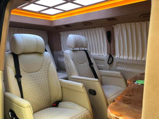 全车共七座,座椅均采用头层牛皮制作,十分舒适。第二排航空头等舱座椅功能强大,具备按摩。加热,通风,多项调节,旋转,腿托延伸等人性化功能,