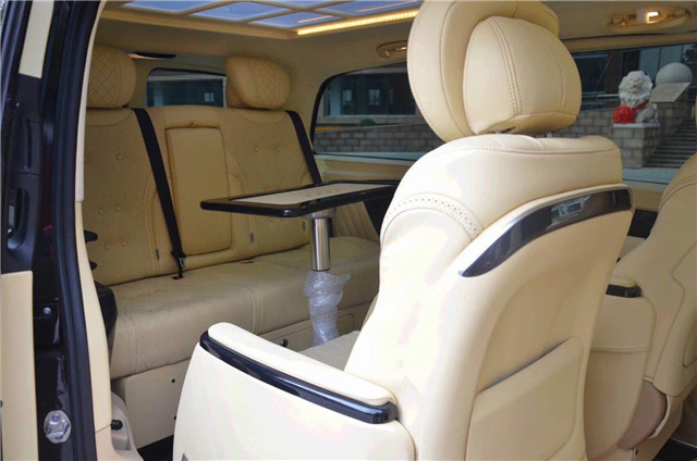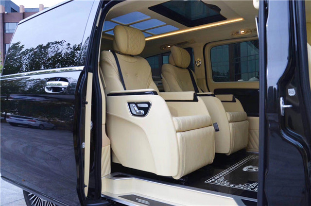 商务时代,选择好的产品真的很重要上荣版迈版奔驰metris,黑车,米内,棕内配置如下,伟巴斯特天窗;行云流水内饰顶棚包覆;Vclass大灯,日间行灯; 双侧电动门;集成转向灯后视镜; 行李架; 不锈钢全覆盖脚踏;Vclass中网;打孔真皮方向盘; 银色出风口;真皮中控台; V-class 流水式中央扶手箱; 打孔真皮座椅; 高级烤漆装饰; 12.3英寸多功能导航一体机; 倒车影像; 车载12L温控冰箱; 灯光触控系统;车载辅助充电;折叠小桌板; 二排打孔真皮S级航空座椅带有加热、通风、按摩、180旋转功能; 三排打孔真皮折叠座椅,电动沙发床; 行政会议桌,双头枕DVD;六宫格顶灯;黑色印花地板