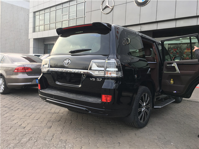 2019款中东版丰田酷路泽5700VX  配置: 天窗,双油底挂备胎,蠕行模式,驾驶模式选择,18铝轮,氙灯LED,银色镀珞中网,前二后四电眼,前雾灯,双区恒温空调和后排手动空调,定速巡航,主驾驶电动座椅调节,真皮多功能方向盘,桃木内饰,智能卡,中央差速锁,一键式启动,脚垫,黑踏, 胎压检测,拖钩