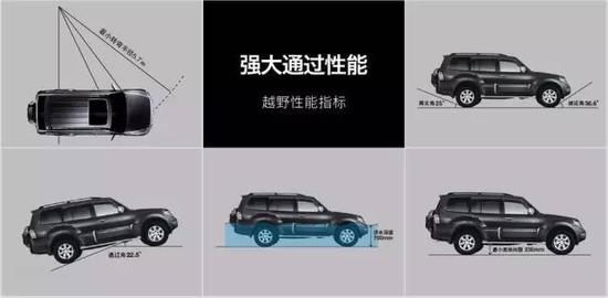 19款三菱帕杰罗V97通过性十分优秀。凭借较短的前悬,接近角达到36.6度,也就是说即使车前有个30多度的障碍物,帕杰罗也可以直接越过。此外,25度的离去角、22.5度的通过角、235mm的最小离地间隙等,在同级别车型中也比较出色。