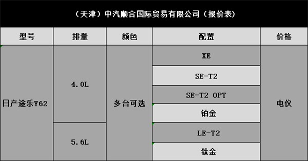 尼桑途乐于1951年发布第一代车型,主打越野车配置,以硬派自居。常说的途乐一般指第五代(Y61)和第六代(Y62)车型。这两代车型凭借着坚固的车身和可靠的性能得到了众多越野爱好者和西北地区人民的喜爱,今天我们就来聊一聊19款日产途乐Y62顶配铂金版。