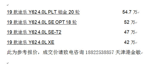 19款中东版日产途乐Y62就是其中之一,它不仅包含了以上的特点,而且还有符合国人口味的气势磅礴的外观造型。配置:19款途乐SE T2配置:7速,天窗,8寸大屏,两气囊,大油箱,遥启,全时四驱,方向盘带返回键,双倒影,6个喇叭,电动尾门,冰箱,氙气大灯LED,大灯清洗,定速,多功能方向盘,自动空调,18铝轮,多地形模式,脚刹,主驾驶电动座椅,七座丝绒座椅,电折镜,前四后四电眼,尾翼,脚踏,智能卡一键式启动,金属漆,拖钩 。