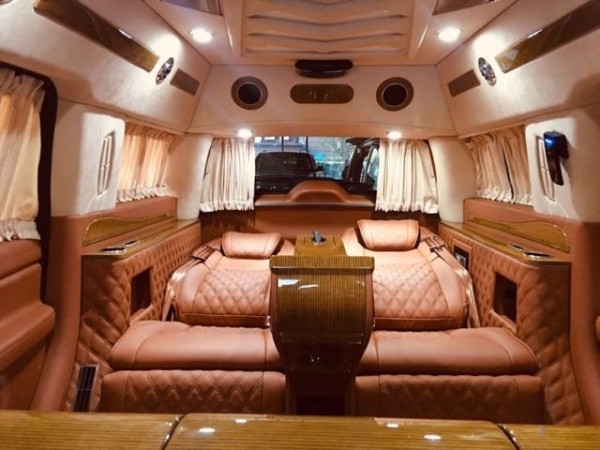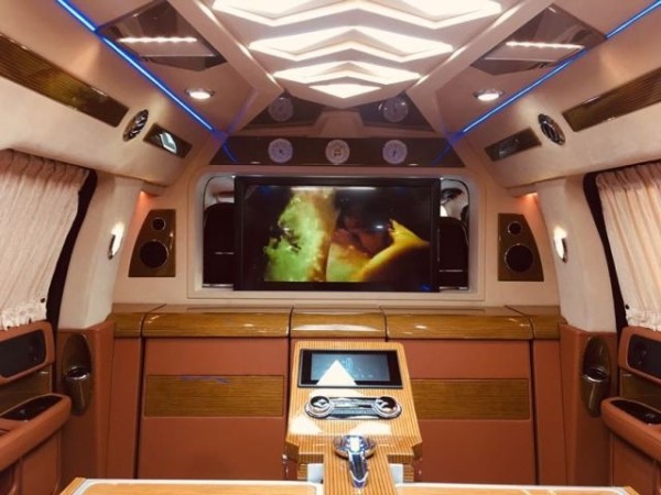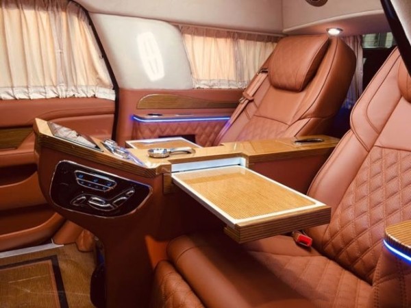 林肯领袖一号总长5米98,车高2米1,坐在车舱里不会觉得很压抑,我们的林肯领袖一号配置了R22寸轮毂,全车大包围,前后保险杠,以及车尾金色踏板和车头金色车标,林肯领袖一号很有贵族气息!