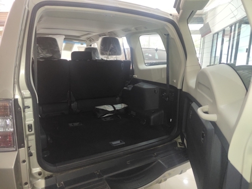 2018款帕杰罗V93(中东版)也有真皮座椅和桃木内饰的高配版本,中控台上也不乏镀铬装饰,但总体设计确实有些老旧。帕杰罗是5门7座设置,因为后挂备胎的原因,后尾门为平开式,第三排座椅可以完全折叠,隐藏在地板上,得到一个平整的后备箱空间。