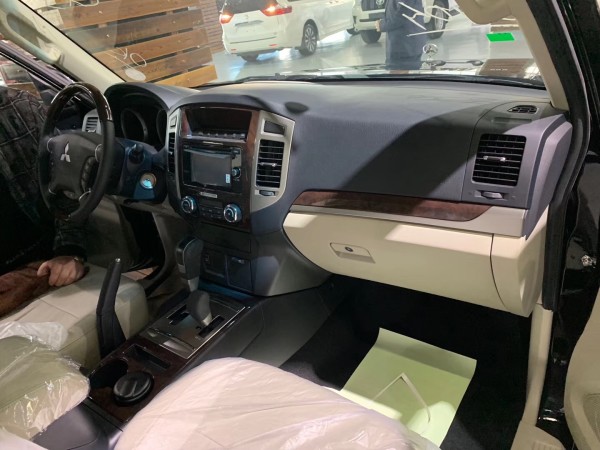 19款帕杰罗V97 金标顶配 184千瓦 250匹马力 329 N-m(2750rpm),五速手自一体变速箱,三菱第二代超选四驱,定速巡航,中后双差速锁,后差带锁止,18轮,后挂备胎LED日行灯,氙气大灯带大灯清洗,前雾灯,全景狩猎式电动天窗,镀铬后视镜带转向灯,镀铬门把手,自动折叠,后视镜下小射灯,侧位航空脚踏,黑色顶部行李架,前后四组小拖钩,88升油箱,黄金包(金色前三钻徽章,金色引擎盖顶饰,金色后三钻饰品,金色“帕杰罗”饰品,尾门金色V6 3.8徽章),七座,真皮座椅,桃木内饰,桃木多功能方向盘(带电话连接按钮),车载小屏(显示数字时钟、油耗、气温、气压、海拔、指南针等功能),12声道北美莱福音响影音系统,主副座椅电动调节, 车载小冰箱,四方位倒车雷达,带引导线倒影系统,智能空调(后排调节按钮),折叠遥控钥匙,AUX功能预留,USB接口,儿童座椅锁,原装千斤顶和工具包,三菱独家ASTC动态稳定及牵引力控制系统,4轮ABS+EBD,胎压监测(新款TPMS),驾驶员和前排乘客SRS前安全气囊(双)31万现车手续齐