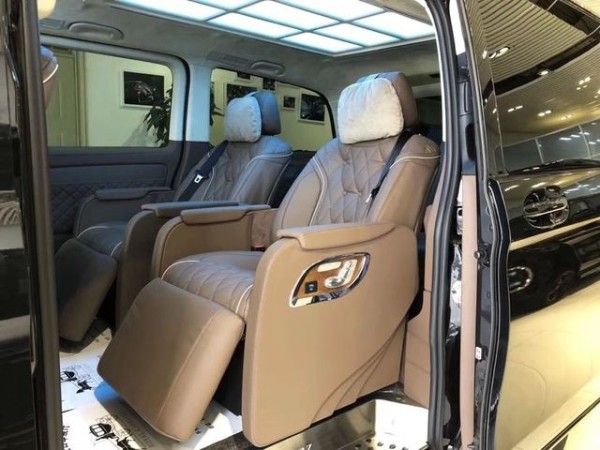 19款奔驰迈特斯车厢为三排座椅设计,第二排座椅更奢华,尺寸更大的同时也拥有更多功能。左侧座椅旁边有更多可操控的按钮和小桌板,一切尽在掌握。19款奔驰麦特斯延续了奔驰内饰所特有精致的做工与合理的布局,常用的功能性按钮都分布在驾驶员触手可及之处,为驾驶员提供了极大的便利性,这样的设计更加有利于行车安全。